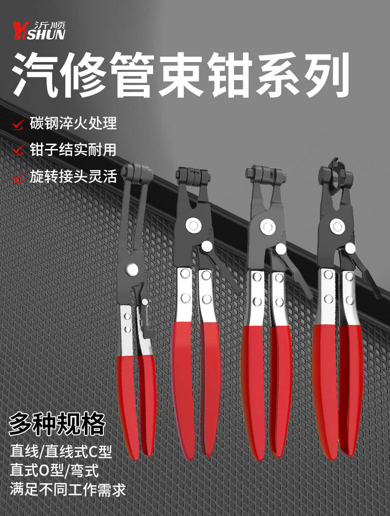 仕様とモデル 光柄管束鉗 **光柄管束クランプ**,プラスチックコーティングされたパイプ結束ペンチ,曲管バンドルプライヤー,ワイヤーハーネス結束ペンチ,タイガープライヤー,油管分離ペンチ,オイルシールフック + エルボ,オイルシールフック + 丸頭 + 角頭
