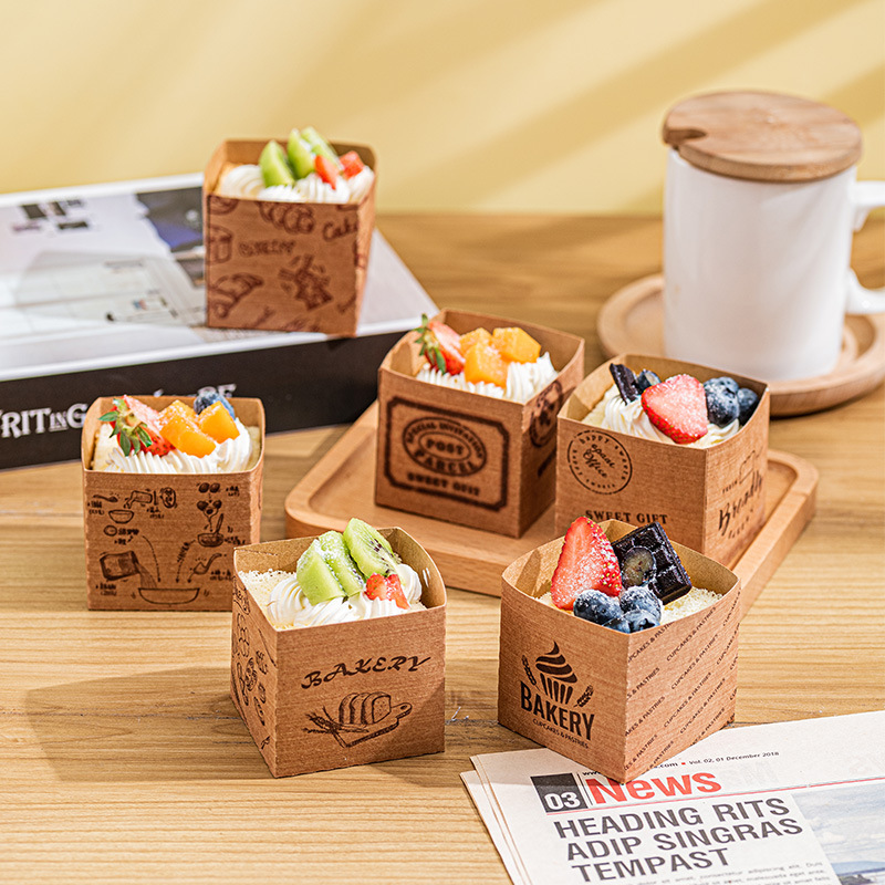 ベーキングケーキ紙コップ耐高温クラフト紙使い捨て北海道シフォンケーキ四角い洋菓子包装箱