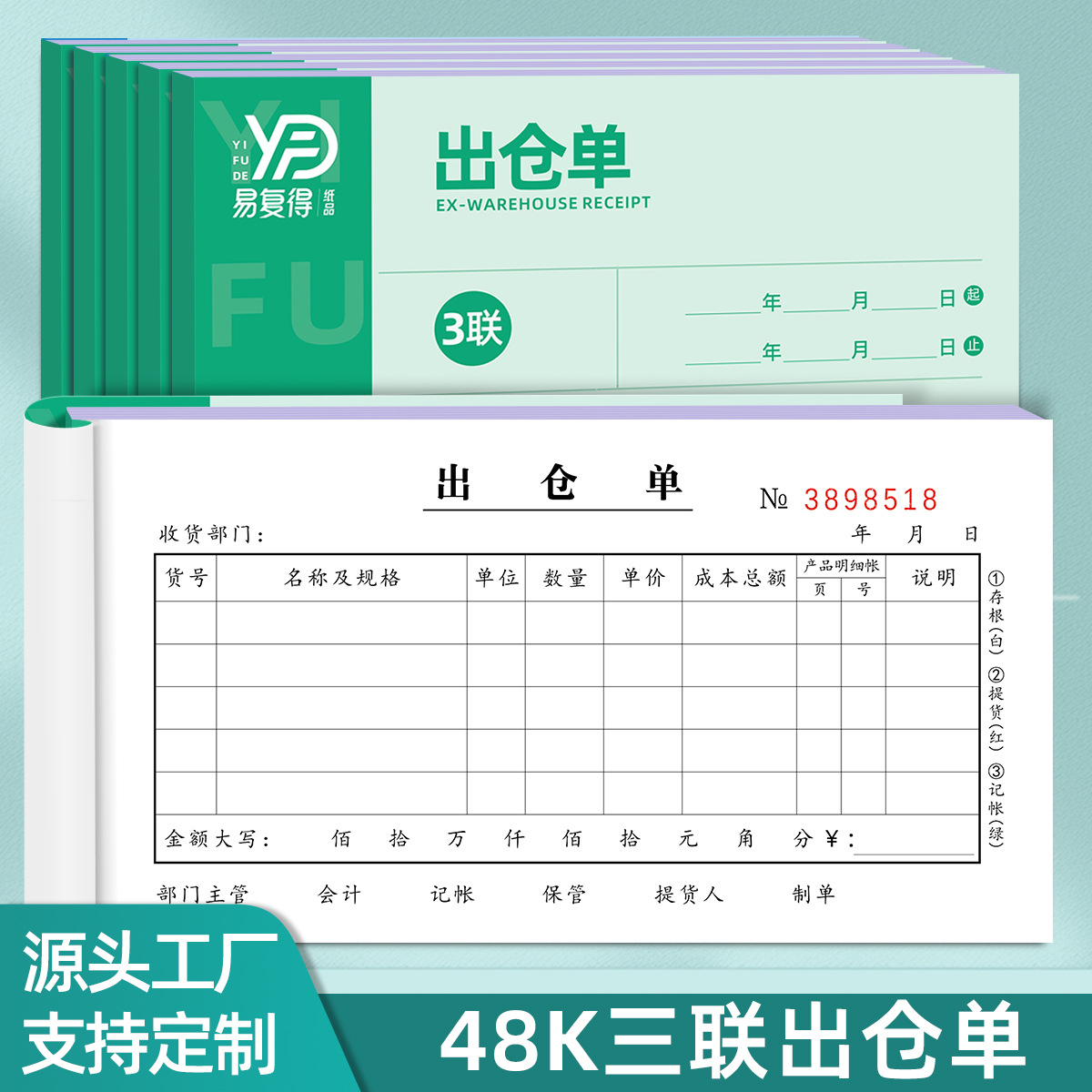 三連出庫伝票入倉倉庫材料受領伝票出庫伝票返品伝票送り状はコピー紙でカスタマイズした