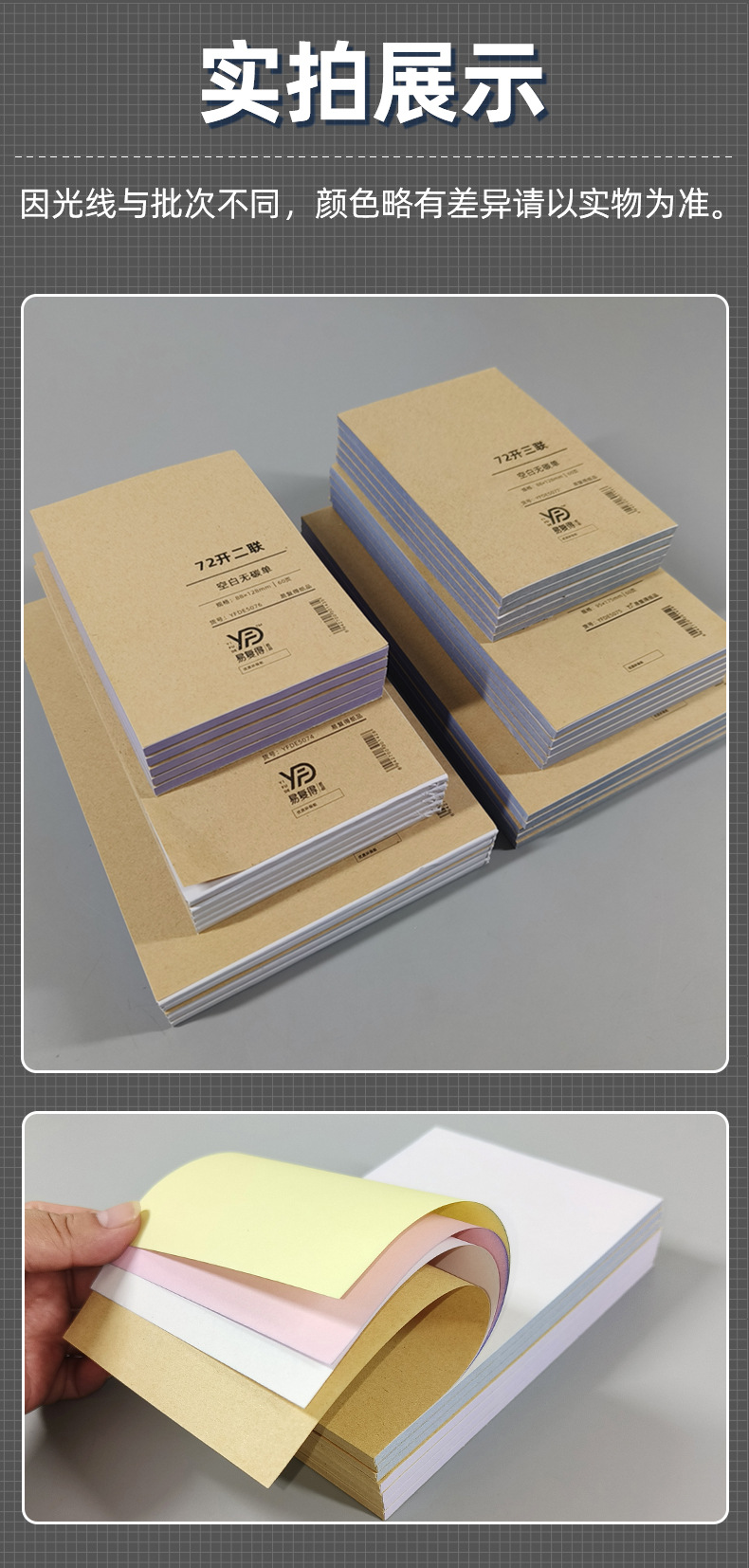二連単欄領収書本三連多欄入金手形現金精算伝票無炭素複写紙メーカーがカスタマイズした