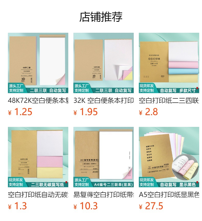 二連空白無炭素複写紙二連自動コピー伝票点メニュー便箋本手書き帳簿