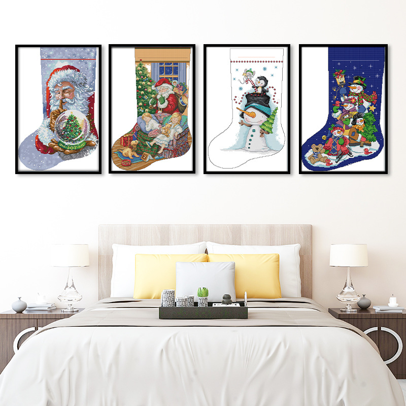 国境を越えた新しい十字刺繍漫画クリスマス靴下ホッキョクグマフクロウ雪だるま刺繍材料寝室メーカー卸売り