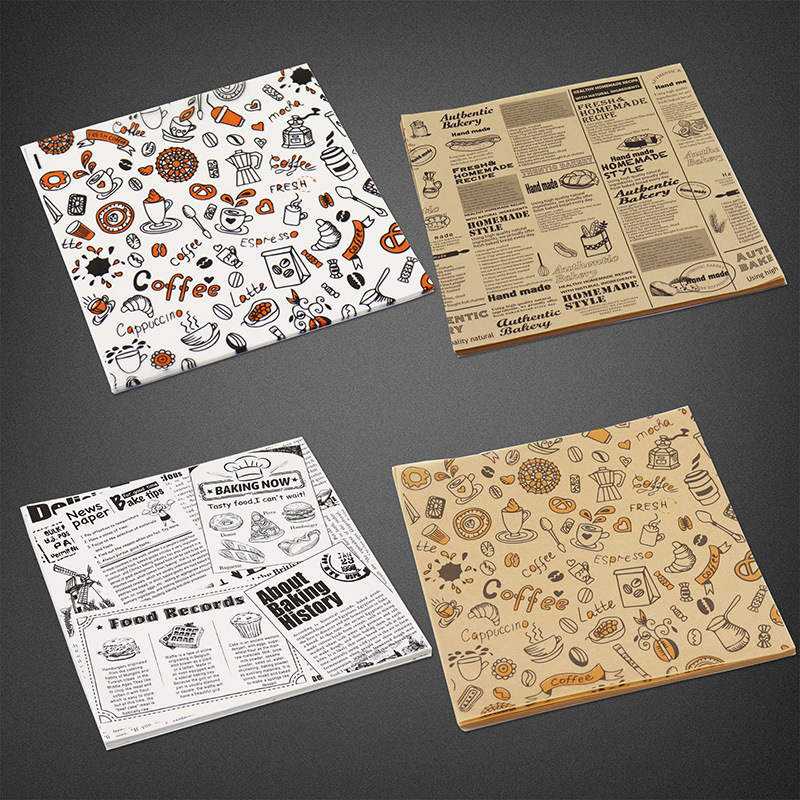 焼き食品防油紙防水エッジパッド盤紙サンドイッチハンバーガーパン包装紙長方形英語紙