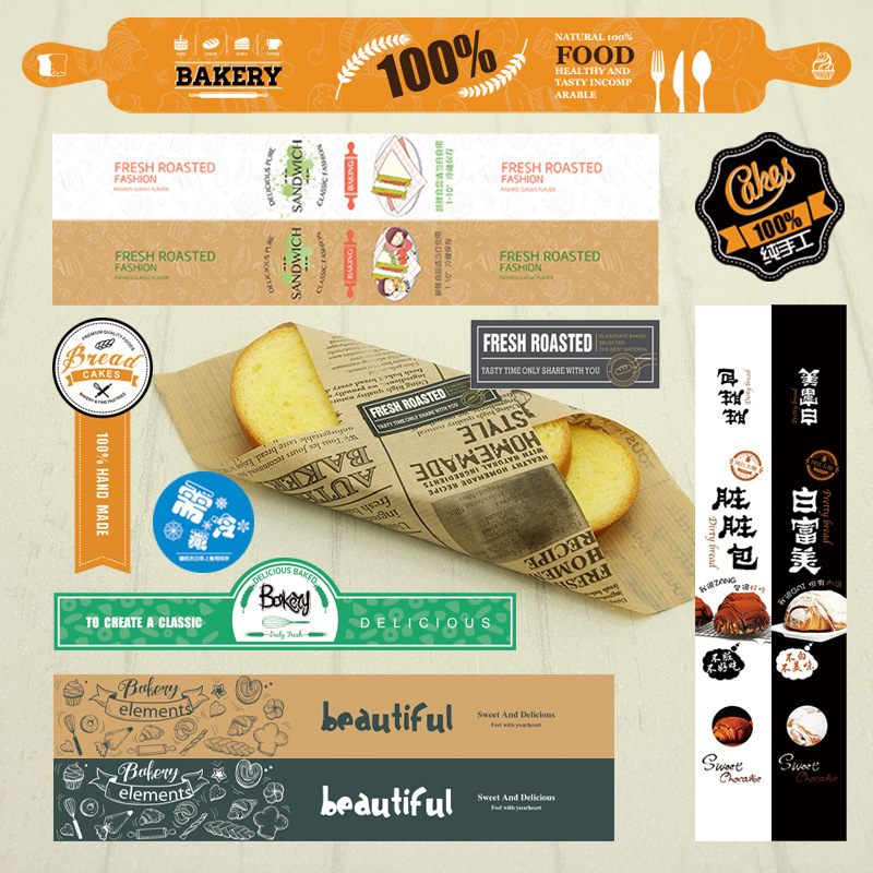 粘着シール包装箱装飾シールサンドイッチパン汚れパック白富美トースト袋の縁取り紙