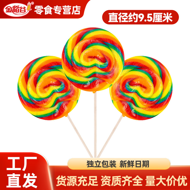 金稻谷80g五彩圆形棒棒糖儿童趣味零食小礼物波板糖散装大量批發
