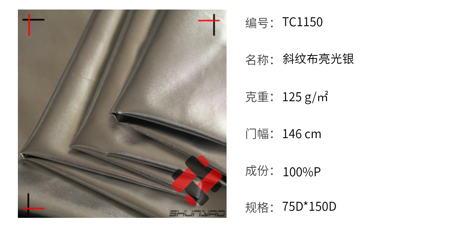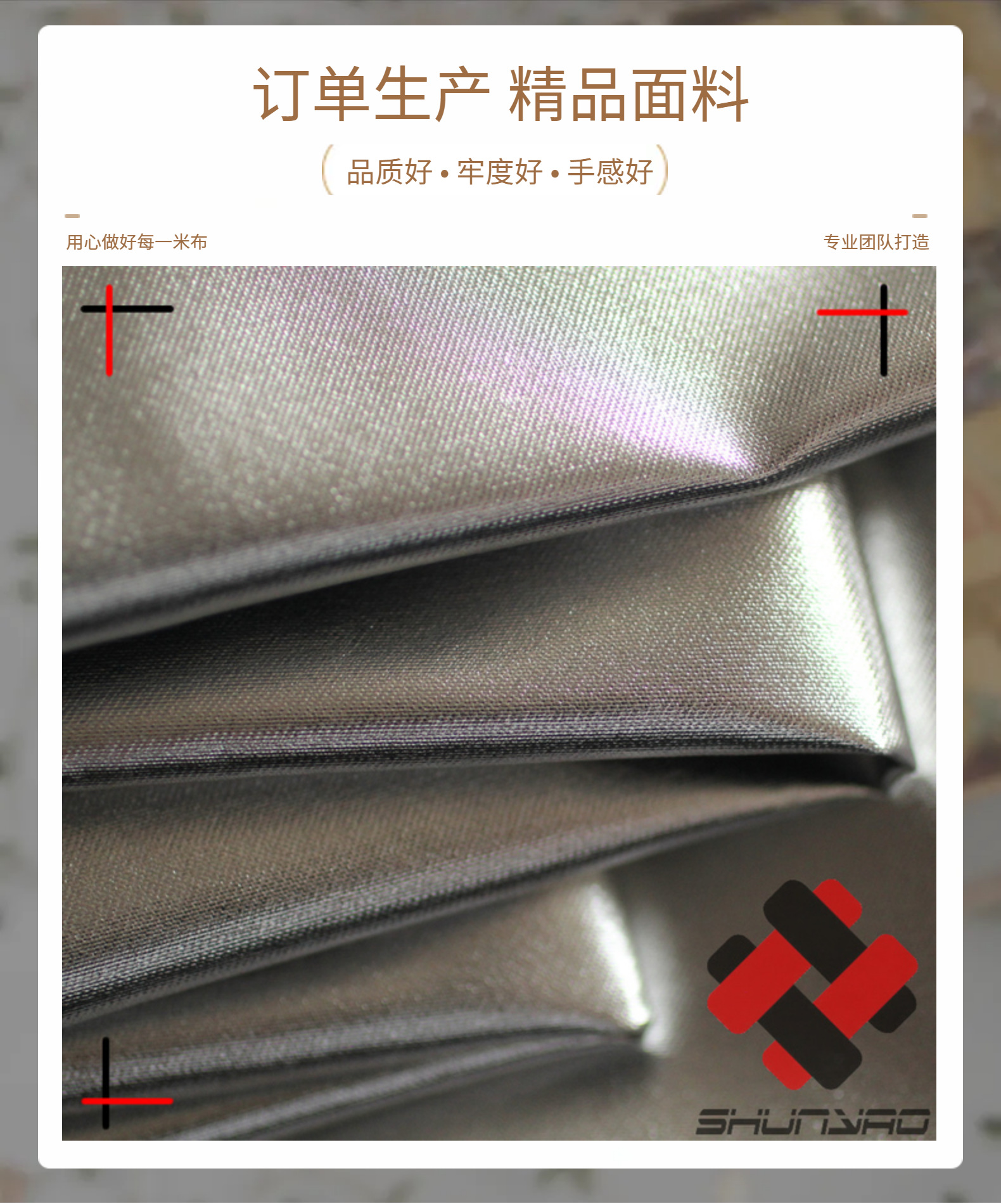 舜尭紡織春亜紡織皮膜感マット銀色生地耐摩耗防水移転コーティング銀色生地