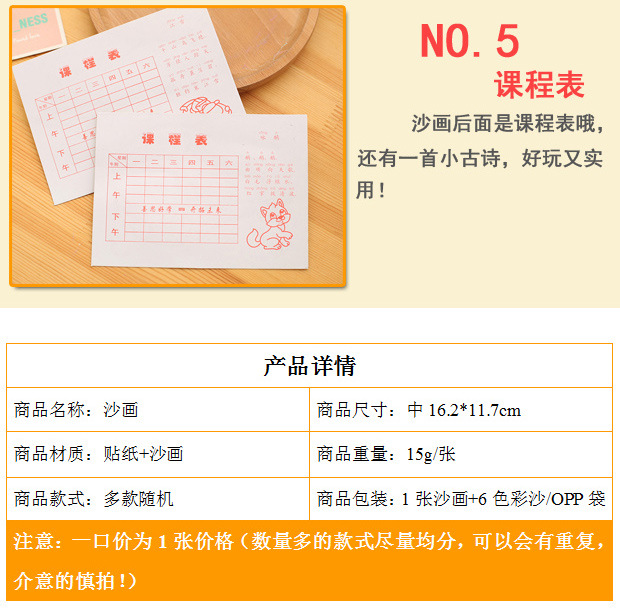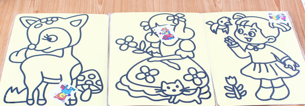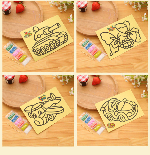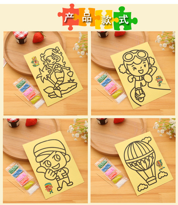 T益智玩具アニメ中号沙画幼稚園diy手作り材料製作16k児童6色彩砂