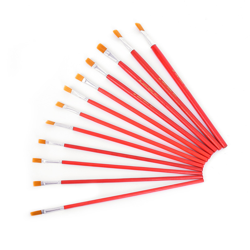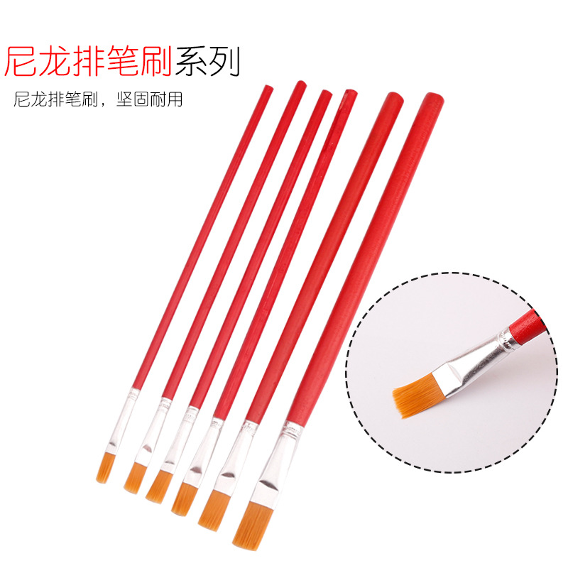 赤い竿のナイロンの毛の平頭の油絵の筆の子供のアクリルの水の粉の美術の筆の工業のペンキは筆を並べて卸売りします。
