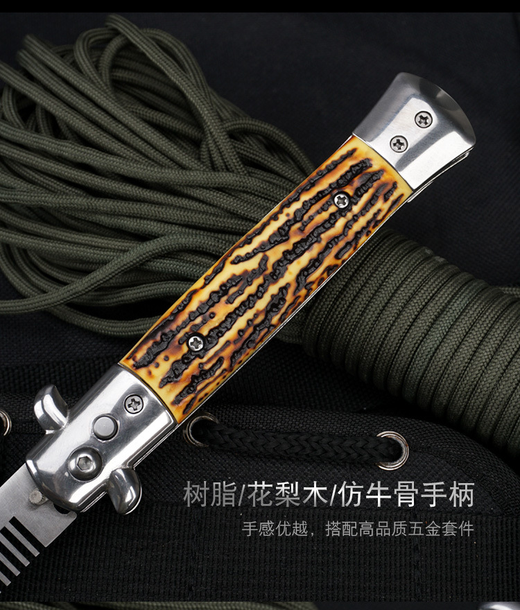 意大利黑手党防身折叠小刀户外随身高硬度战术求生折叠刀配泥龙套