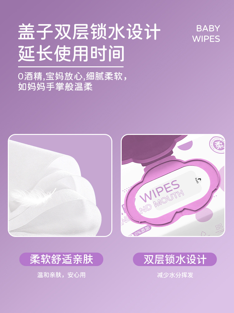 ウェットティッシュ80大きなバッグを引き出して赤ちゃん専用のウェットティッシュをきれいにします。