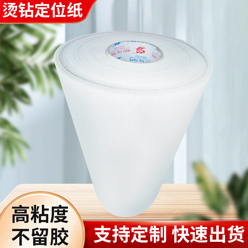 烫纸-承载烫图图案的转移膜,主要用来固定烫钻不移位、脱落,把烫钻/烫片粘在烫纸上做成烫图图案,然后压平熨烫,使图案粘在材料上烫图时避免错位.烫图的辅料又称烫图纸,烫钻纸。