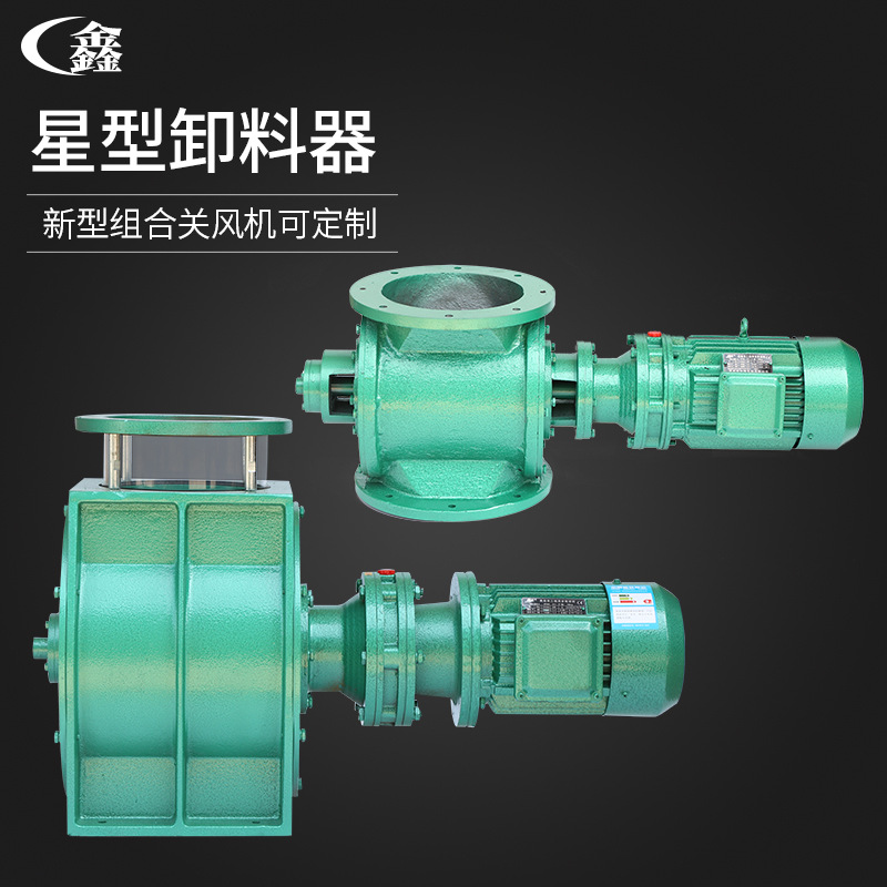 卸料装置分三部分:电机、摆线针轮减速与转龙式卸灰阀,星型卸料器装置