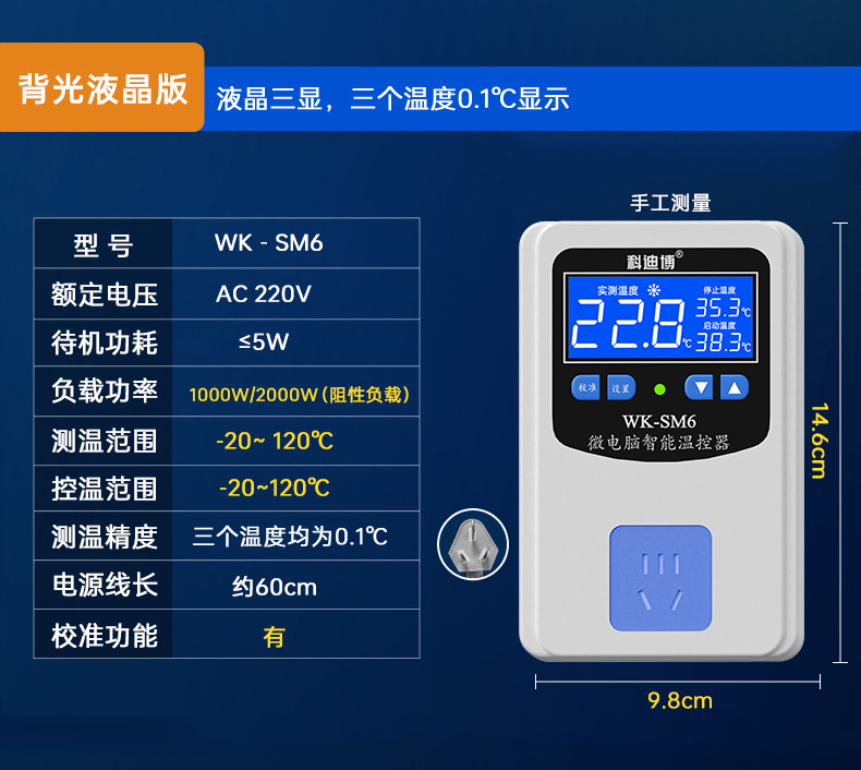 高精度液晶表示温度制御器養殖水槽爬虫類ボイラー温度制御器SM6-1000温度制御0.1度