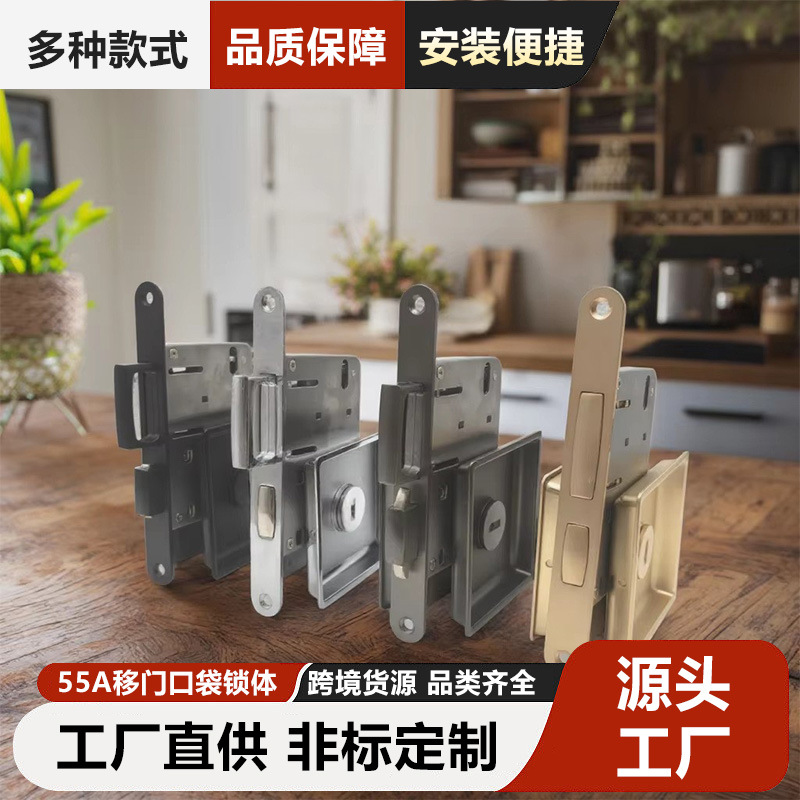 現貨、越境供給、工場直送、亜鉛合金製ポケット引き戸用ロック本体、室内木製ドア用金物、ロック付属品