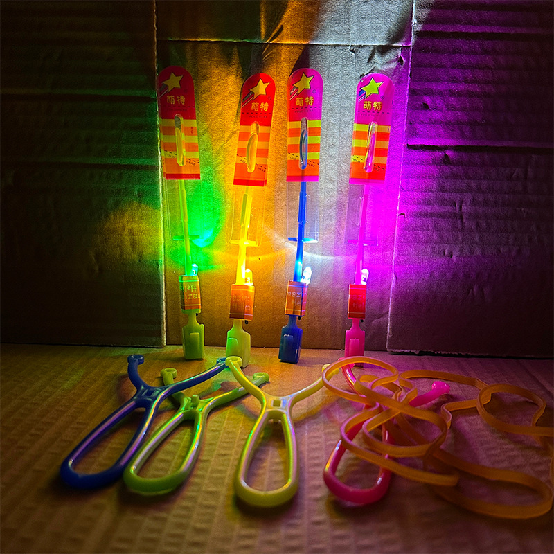 【产品材料】:塑料、优质耐折叶片橡皮筋、LED灯 AG3环保扭扣电池三颗