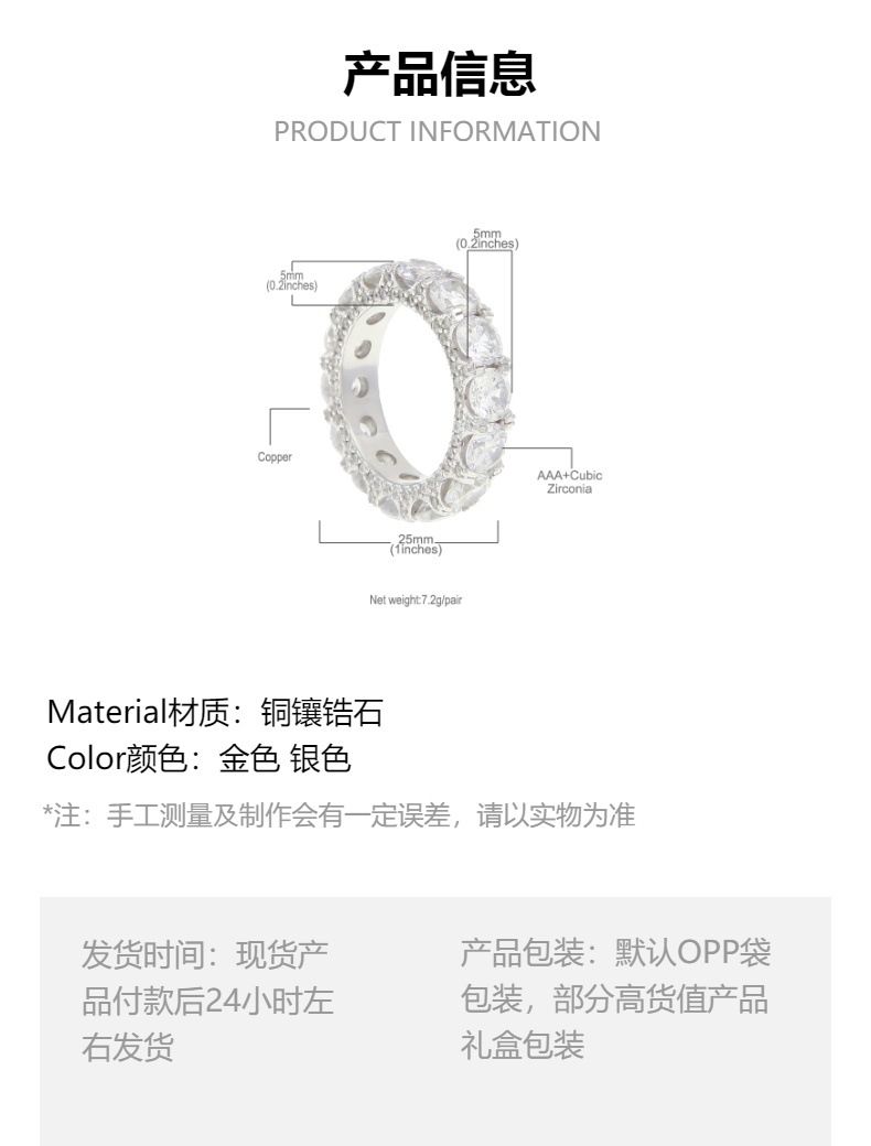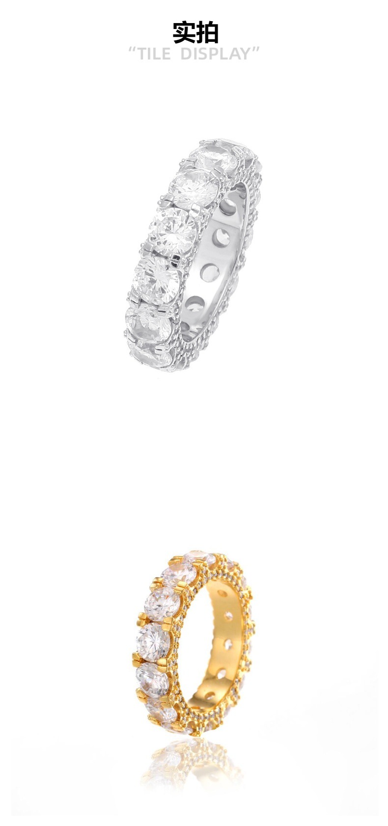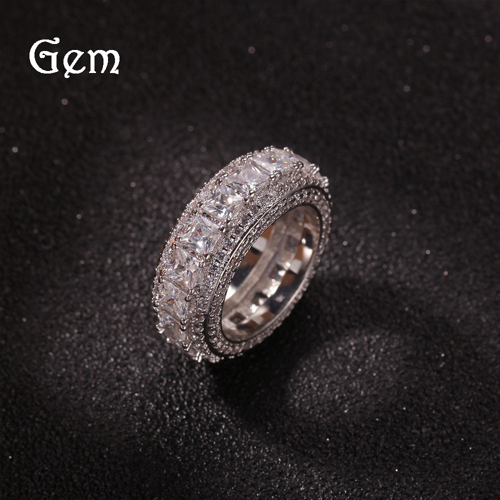 欧米ヒップホップラップキューバチェーンリング8mmフルジルコンメッキ本金風トレンドメンズ指輪アクセサリー