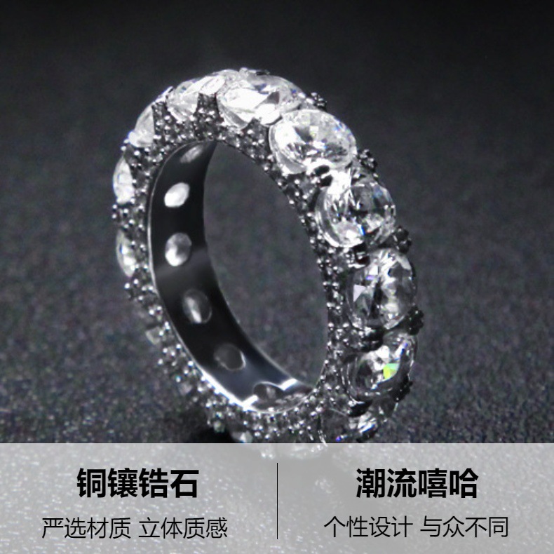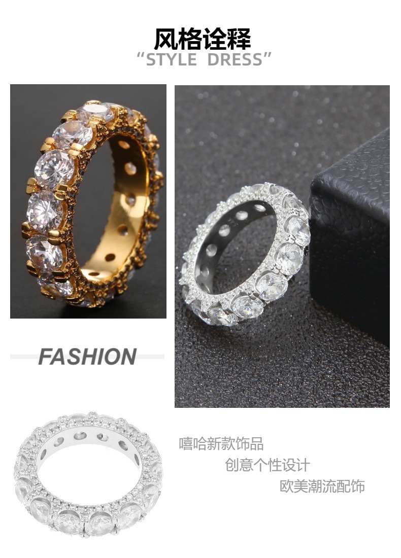 国境を越えた欧米の銅にジルコンを入れたヒップホップ風金色の指輪復古個性円形男性指輪卸売り義烏