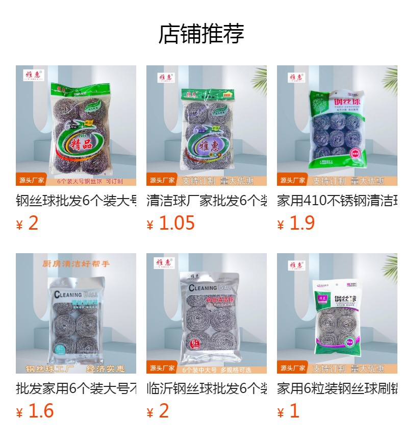 家庭用清潔ボール卸売り12個入りステンレス鋼鋼玉キッチン清潔鍋ブラシ臨沂5元店ブラシ鍋ボール