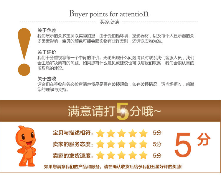 6、售后服务:因长途运输过程当中所产生的货物损坏及因运输过程或人力不可控制因素等所造成的时间拖延,我们不予承担。