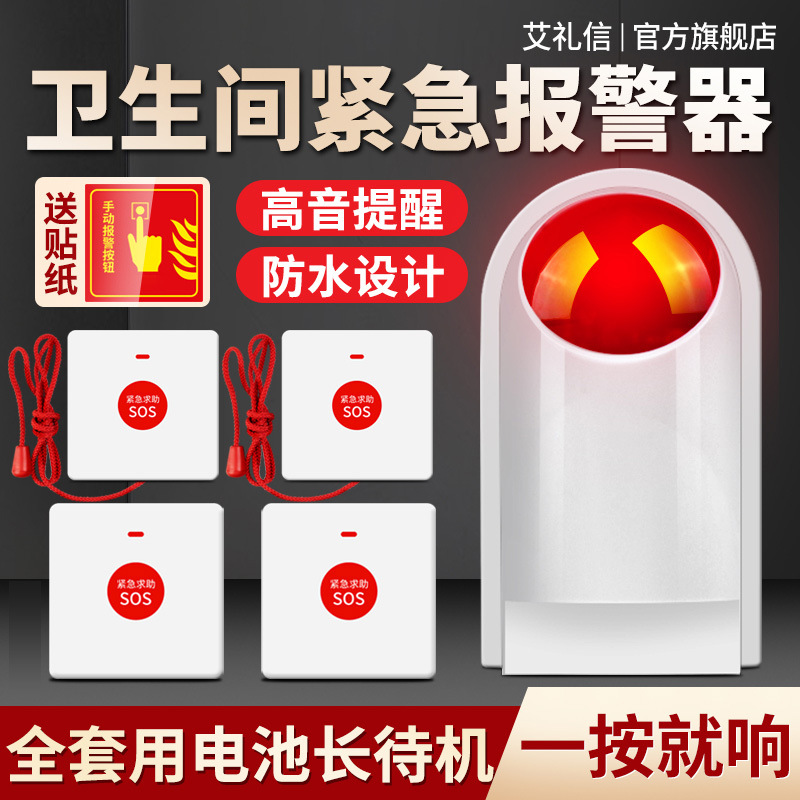 障害者用トイレワンタッチ緊急警報ワイヤレストイレ救助ボタン音と光警報装置