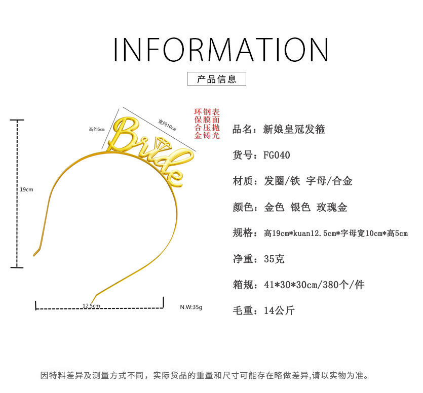 クロスボーダー花嫁クラウンアクセサリーbride to beカチューシャヘッドバックルアルファベットカチューシャヘッドアクセサリー欧米の結婚式物