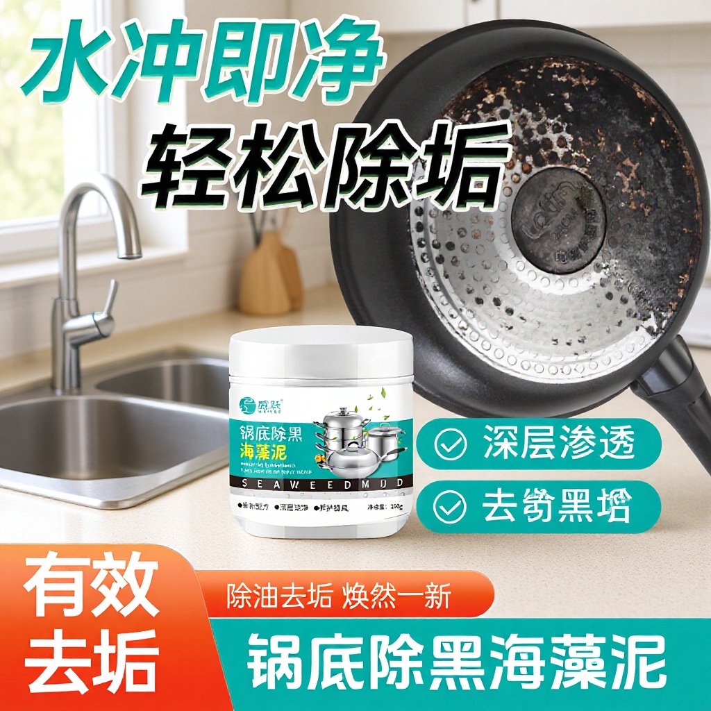 锅底除黑海藻泥膜不锈钢除黑剂厨房去重油污强力去除污垢海藻泥膜