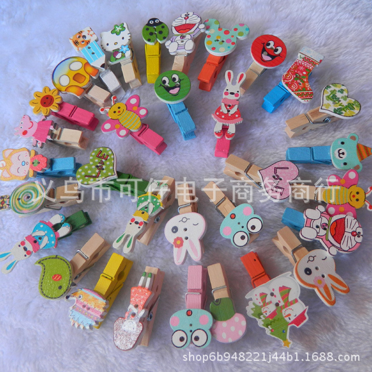 メーカー直販韓国式3.5cmカラーアニメ動物小木クリップ木製写真クリップ文房具便箋クリップ