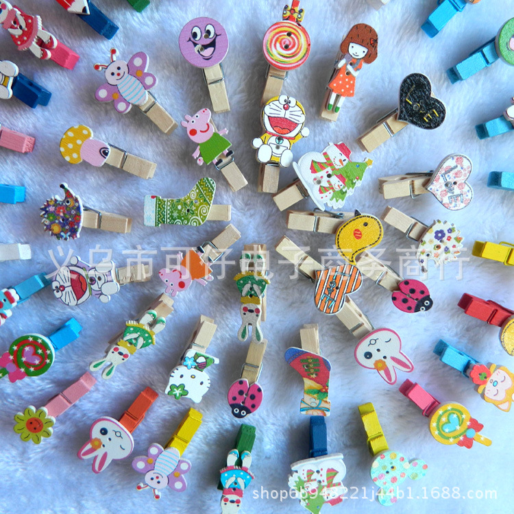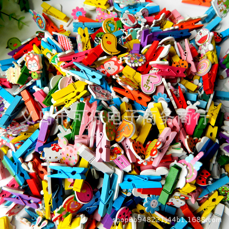 スポット卸売環境に優しい木製写真装飾カラフルな小さな木製クリップオリジナルカラー漫画 DIY 収納ノート木製クリップ