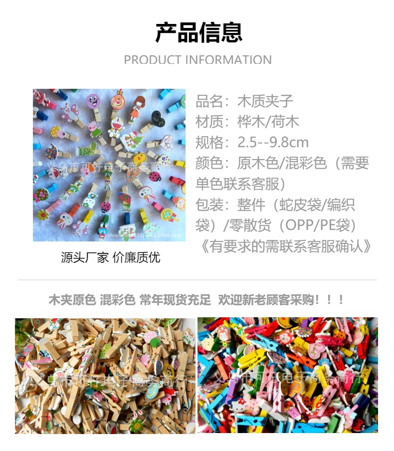 メーカー直販3.5cm愛小木クリップ飾り写真クリップファイル収納クリップ便箋クリップスナッククリップ