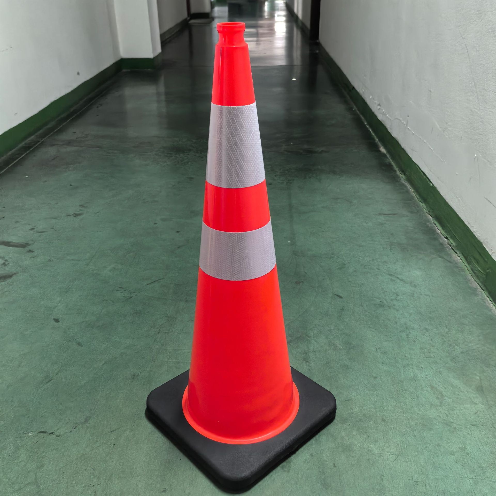 50cmPE道路標識コーン、交通警告反射コーン、アイスクリームコーン型、加重ゴム底、プラスチック製道路障害物、衝突防止コーン