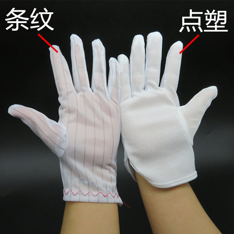 レーザー切断厚い静電防止手袋両面ストライプエッジクリーン手袋電子工場作業手袋