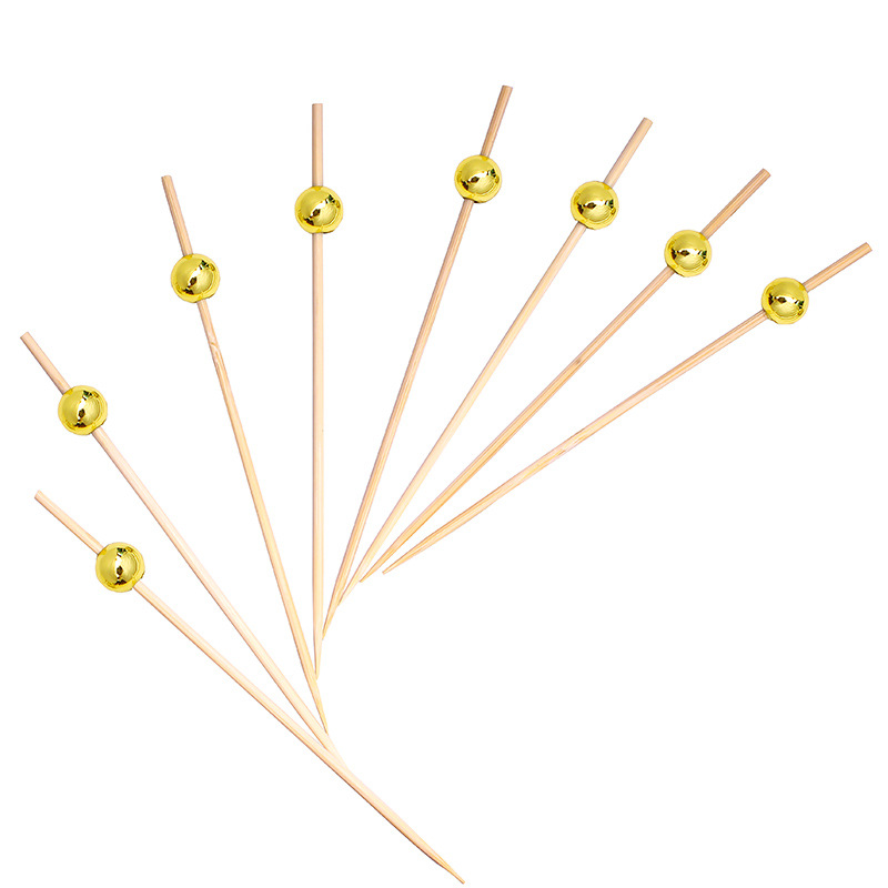 100本/バッグ創意芸術竹製竹串金色真珠盛り合わせ果物串寿司串軽食串卸売り