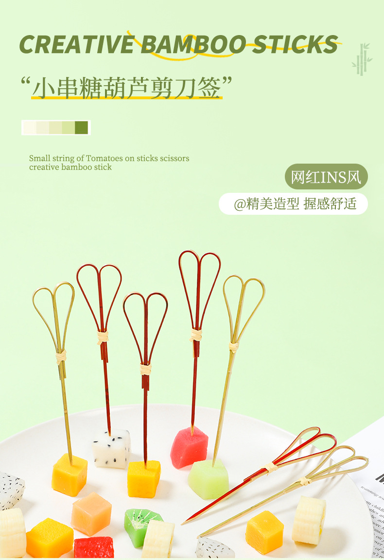 12 センチメートルはさみ串インターネット有名人ミニヤムイモ豆砂糖漬けホーズ小さな串竹串フルーツ串バー装飾商業卸売