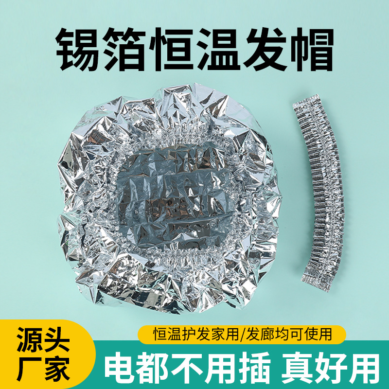 アルミホイルヘアキャップ、恒温加熱美容ヘアケアオイルマスク、防水バスキャップ、使い捨てヘアマスク、アルミ箔キャップ