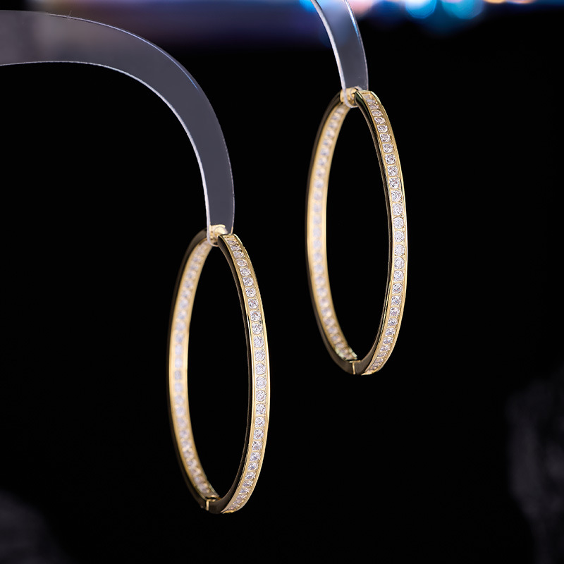 大衆デザイン高級感素輪耳ボタンジルコンモザイク幾何学的な大きな耳輪シンプルな大気円輪イヤリング