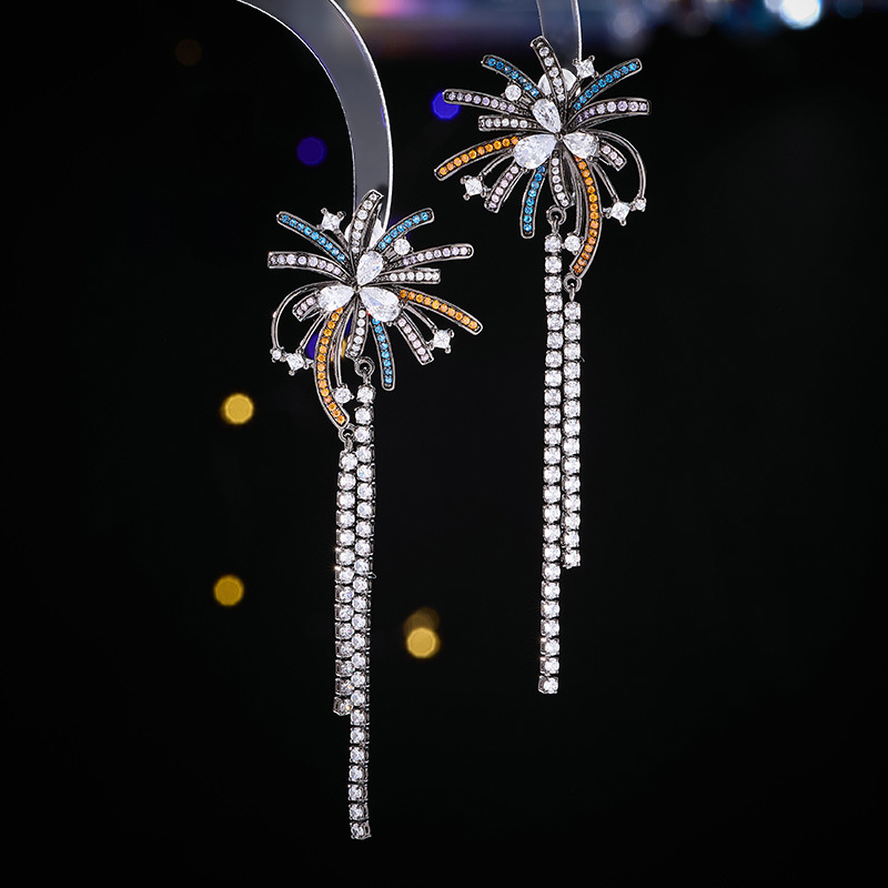 豪華な風が輝く花火の長いフリンジイヤリングs925銀針気質高級感