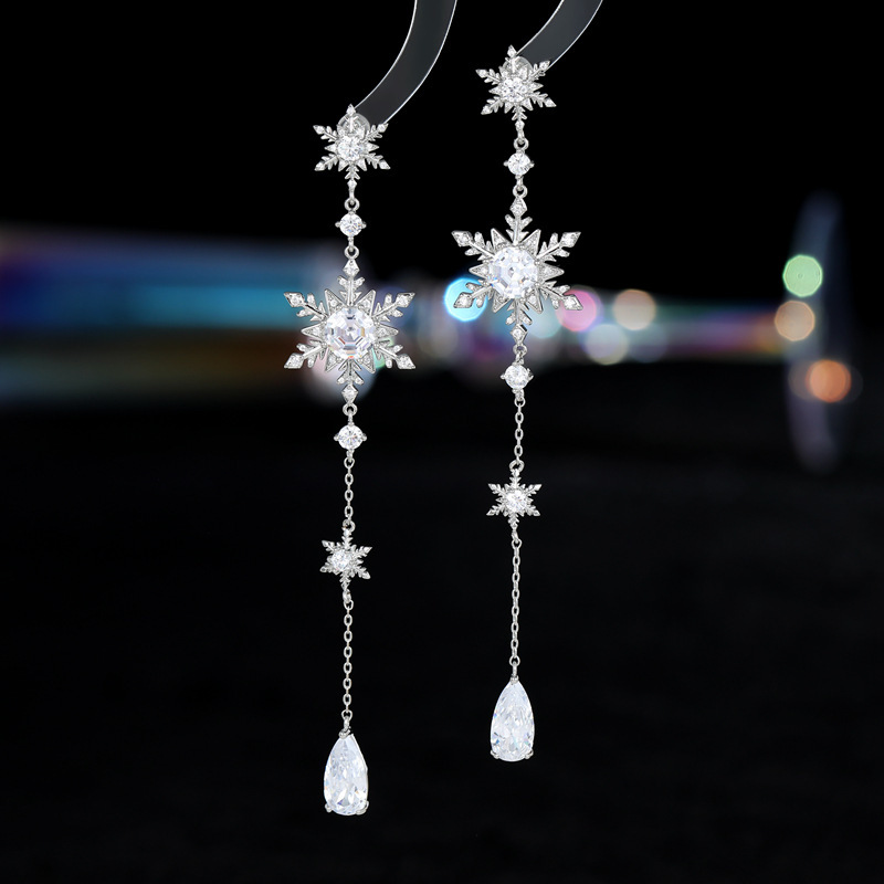 新型の軽豪華風ファッション秋冬雪花耳飾り卸売り超フラッシュジルコンモザイク小衆デザイン感ロングイヤリング
