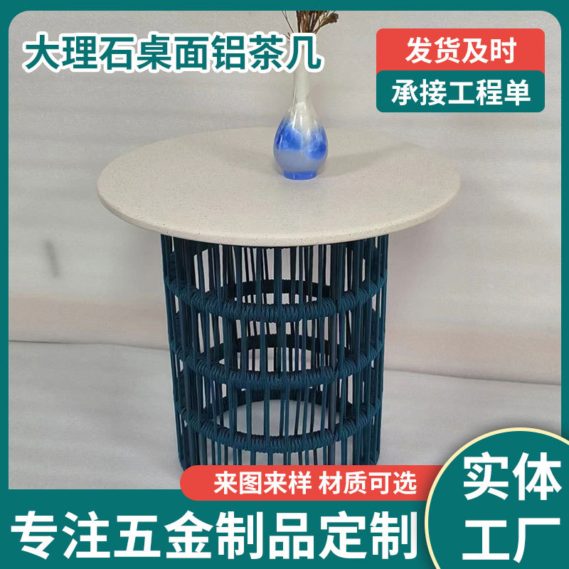 戸外アルミ棚カスタム大理石デスクトップ現代シンプルな白いカフェのそばのリビングルームのカジュアルなお茶テーブル