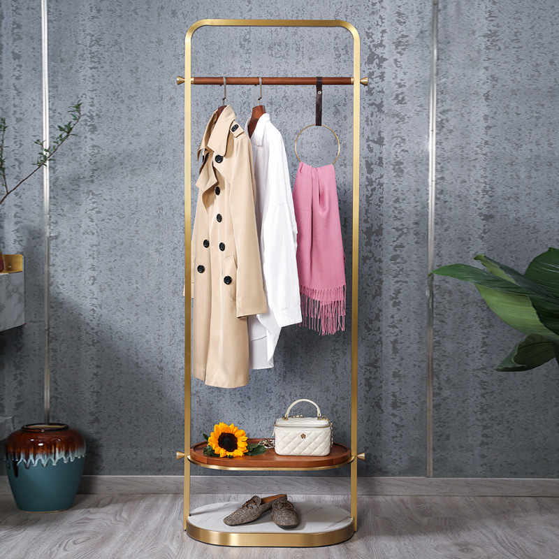 軽い豪華な北欧の真鍮の服のハンガーの寝室は床に落ちてステンレスの服のハンガーの家庭用の簡易な金色の客間の服のハンガーです。