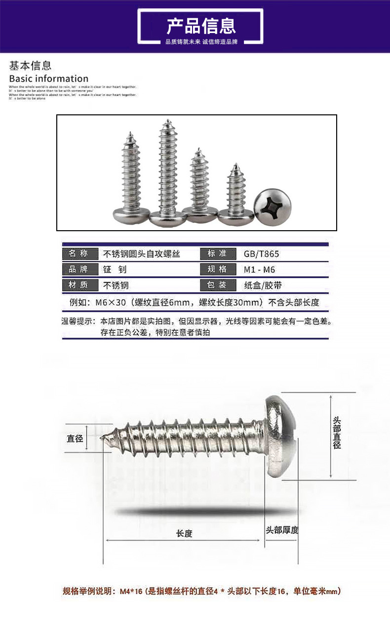 丸頭十字タッピングねじステンレスpa電子タッピングねじgb845丸頭尖尾タッピングねじ
