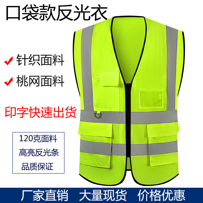 ポケットタイプの反射馬甲多ポケット反射服安全印字交通馬クリップ工事現場のハイライト反射