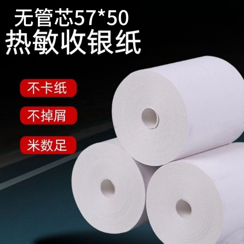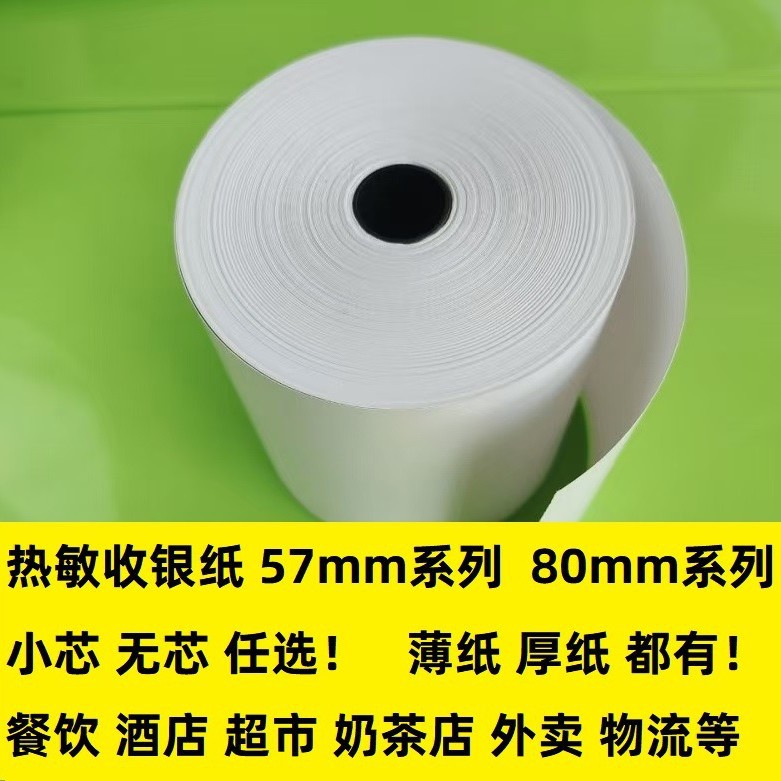【无管芯收银纸,可定制各种规格,各种米数,如:57X25、57X30、57X40、57X50、80*80等。】