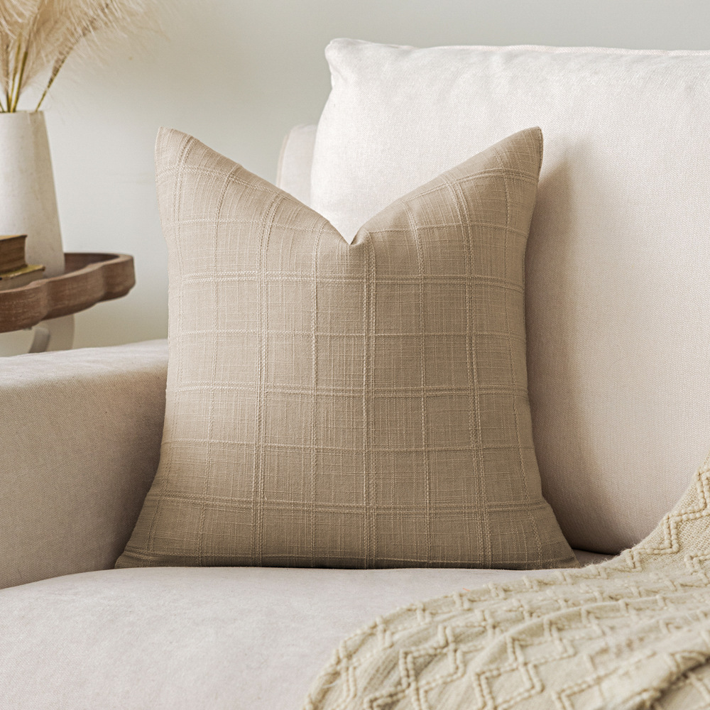 苎麻方格抱枕套中性侘寂复古靠垫套现代波西米亚家居装饰沙发枕