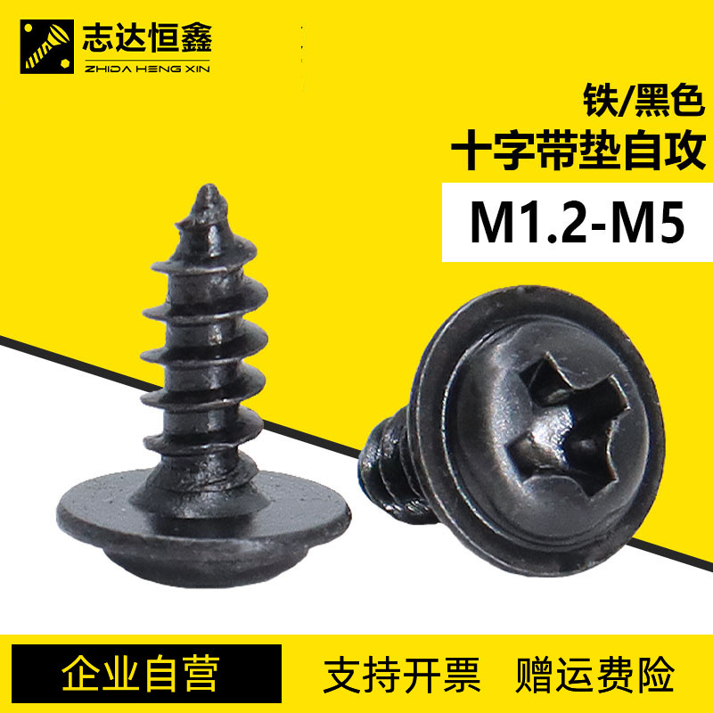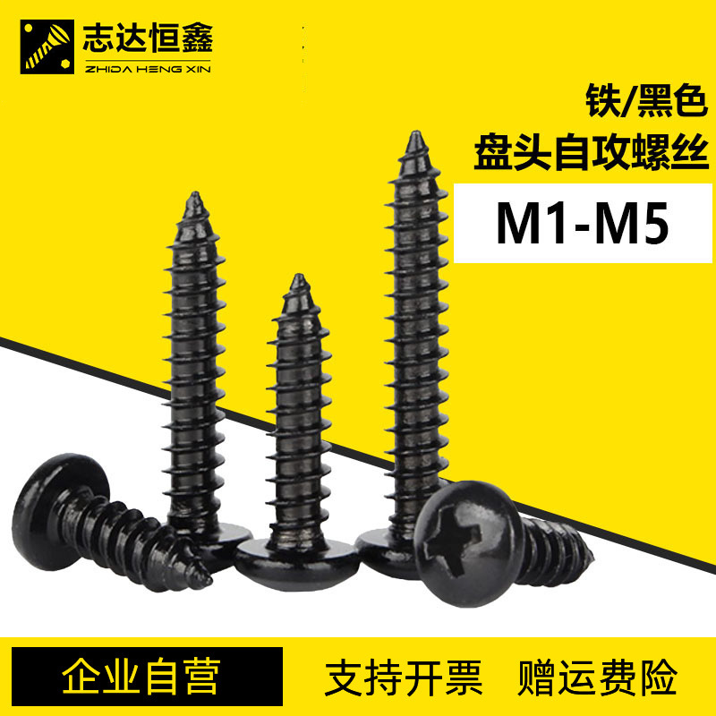黒十字盤頭パッド付きタッピングねじpwa丸頭ベルト介粗歯先先先タッピング小ねじM1.2-M5