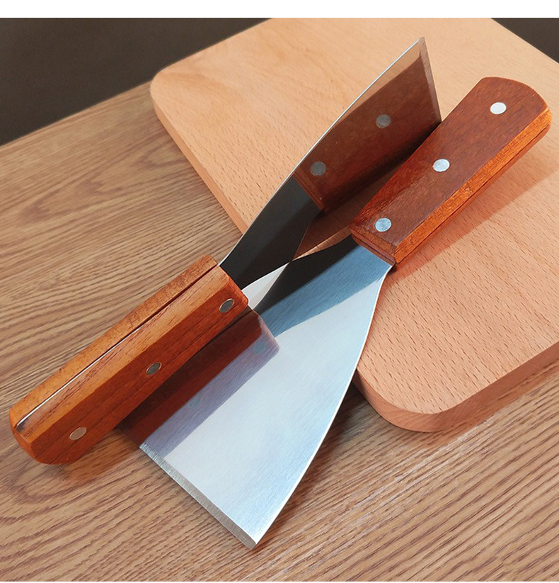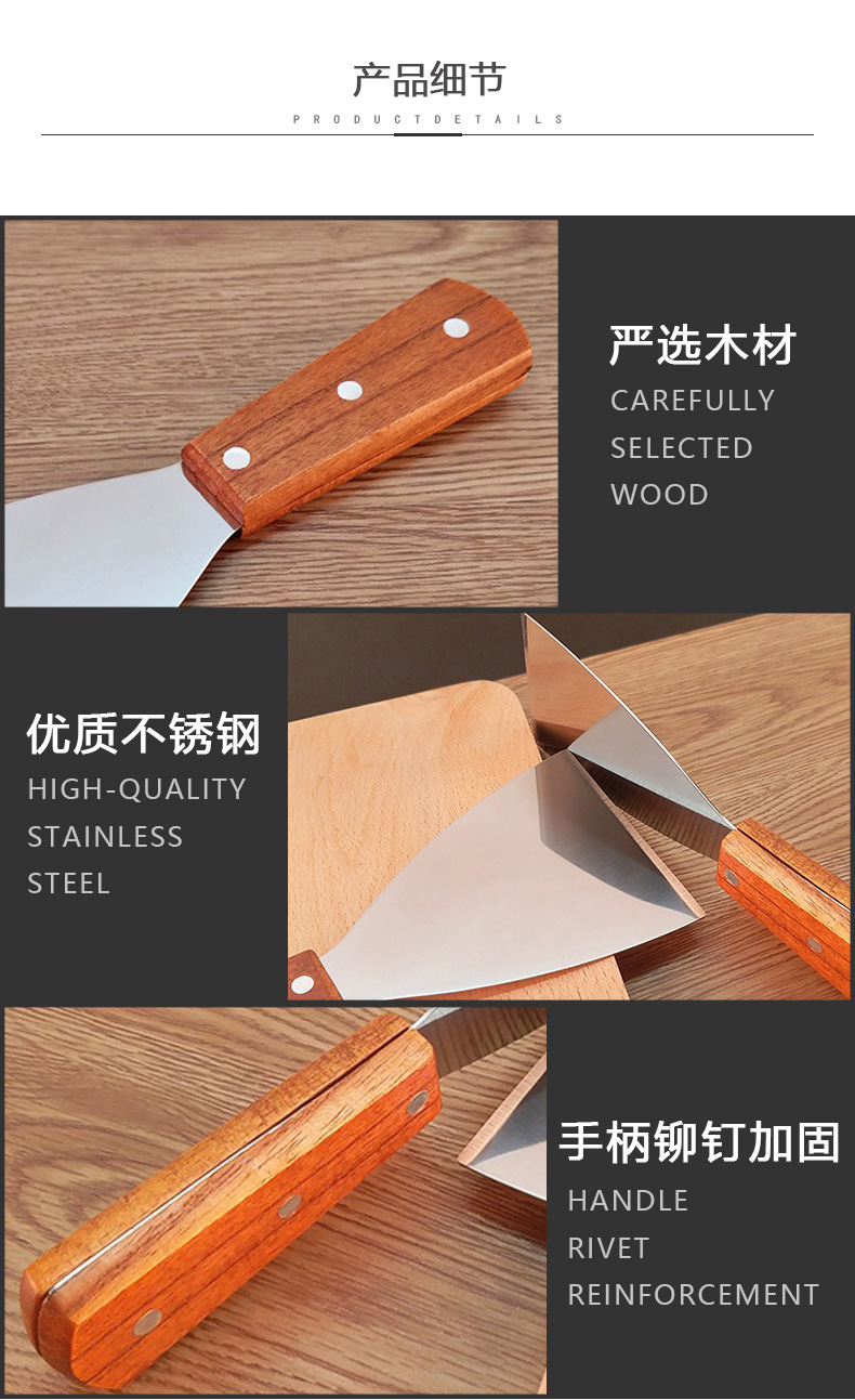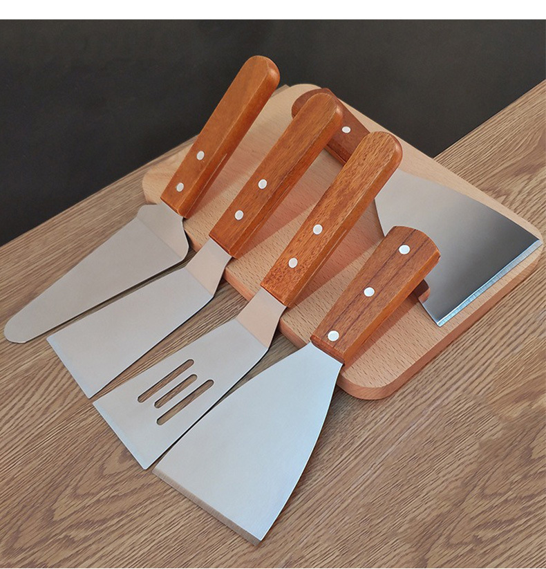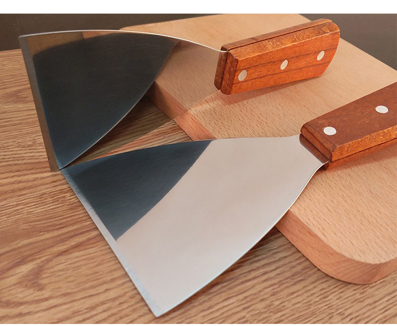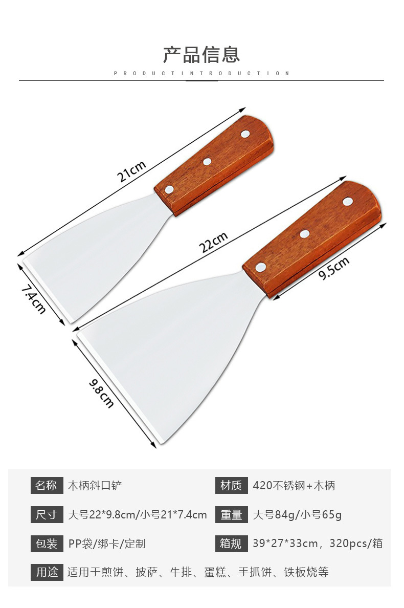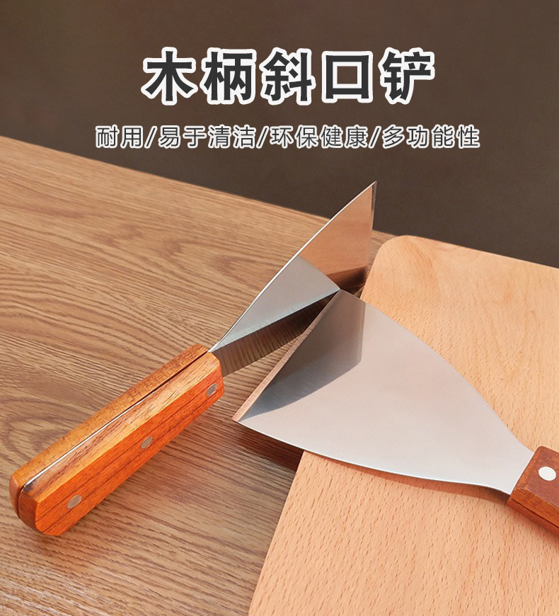 现货木柄不锈钢披萨铲刀斜口铲子 厨房烘焙牛排烹饪铁板烧煎铲