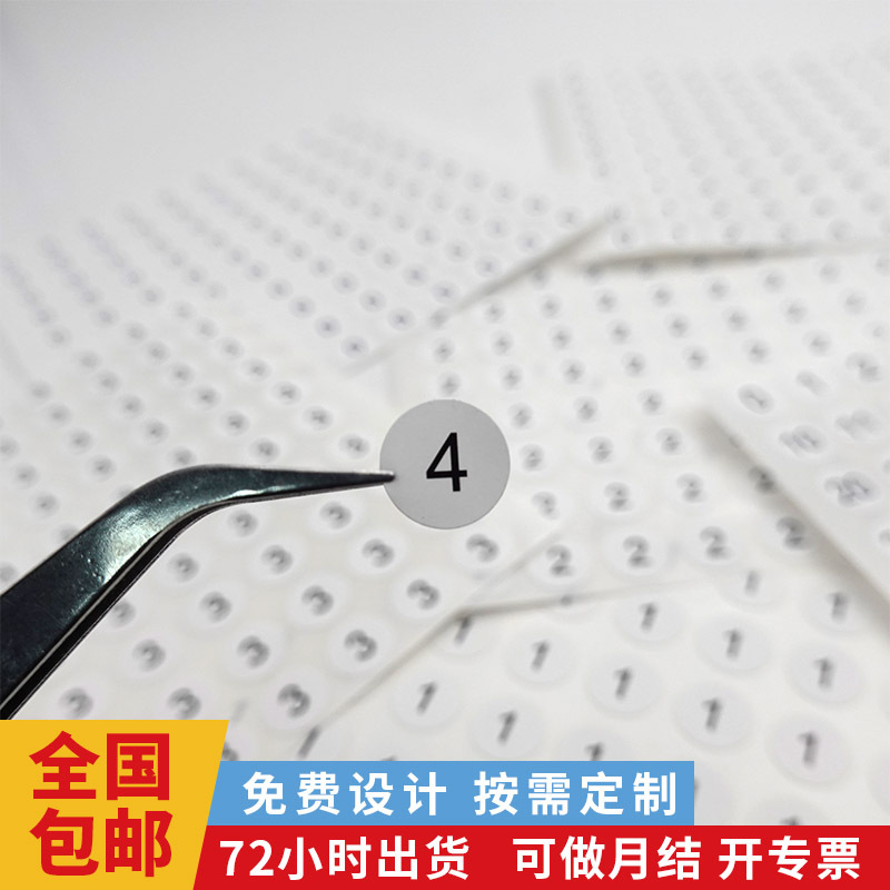 数字贴纸透明定制 编号贴纸10MM 透明印黑字或白字