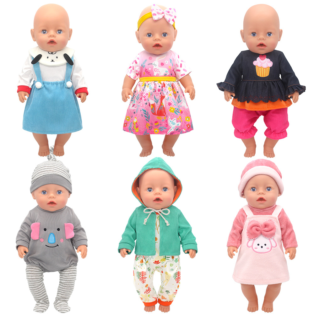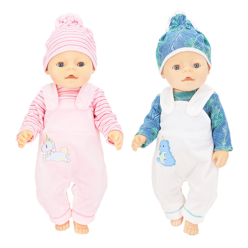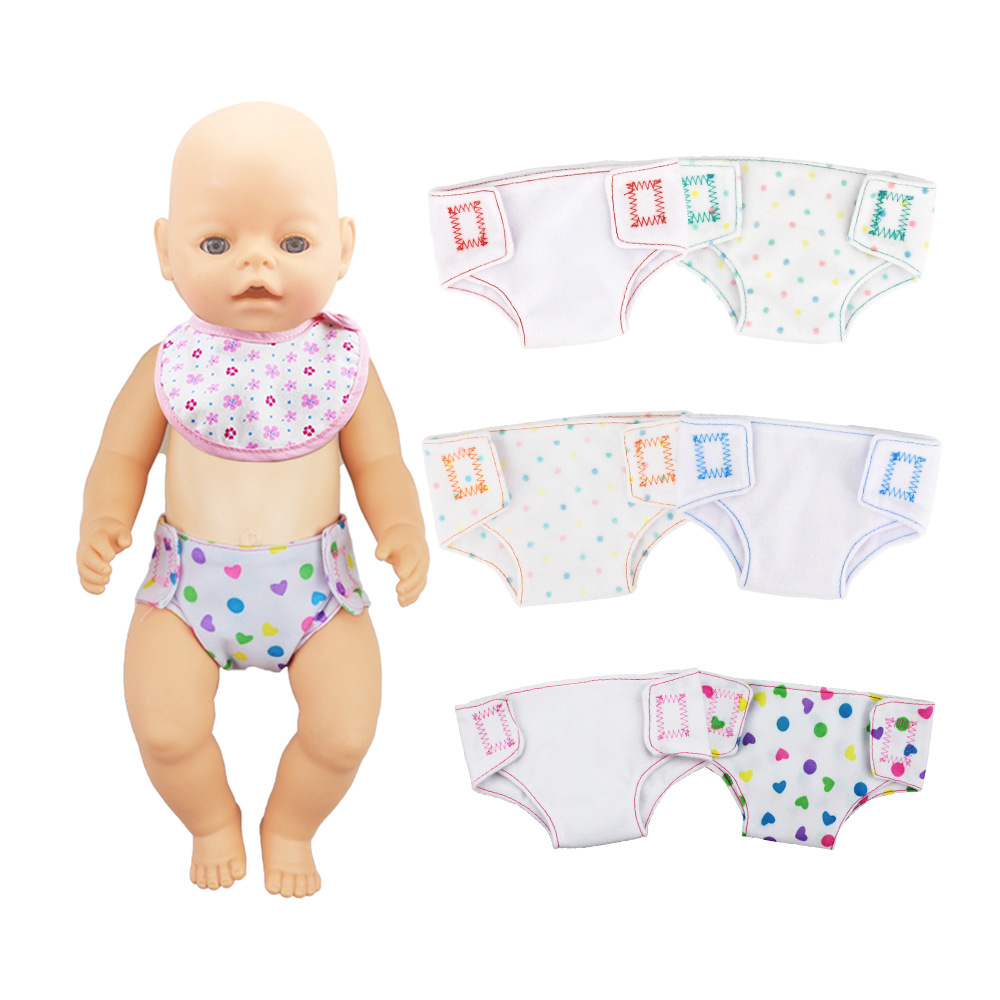 人形よだれ服おむつセット14-18インチ人形漫画プリントクロスボーダー