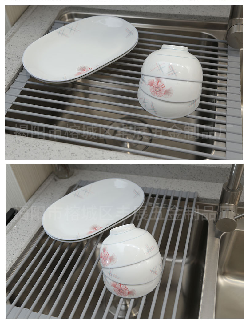 硅胶沥水卷帘可折叠碗盘置物架洗碗池水折叠厨房收纳