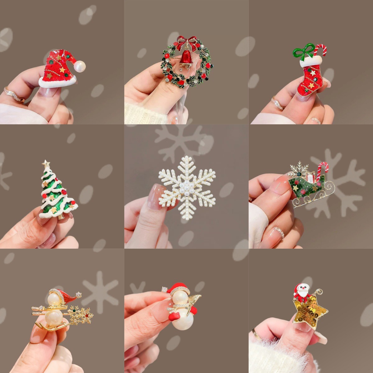 新款欧美圣诞胸针拐杖麋鹿雪花雪人圣诞树花圈铃铛靴子别针胸花