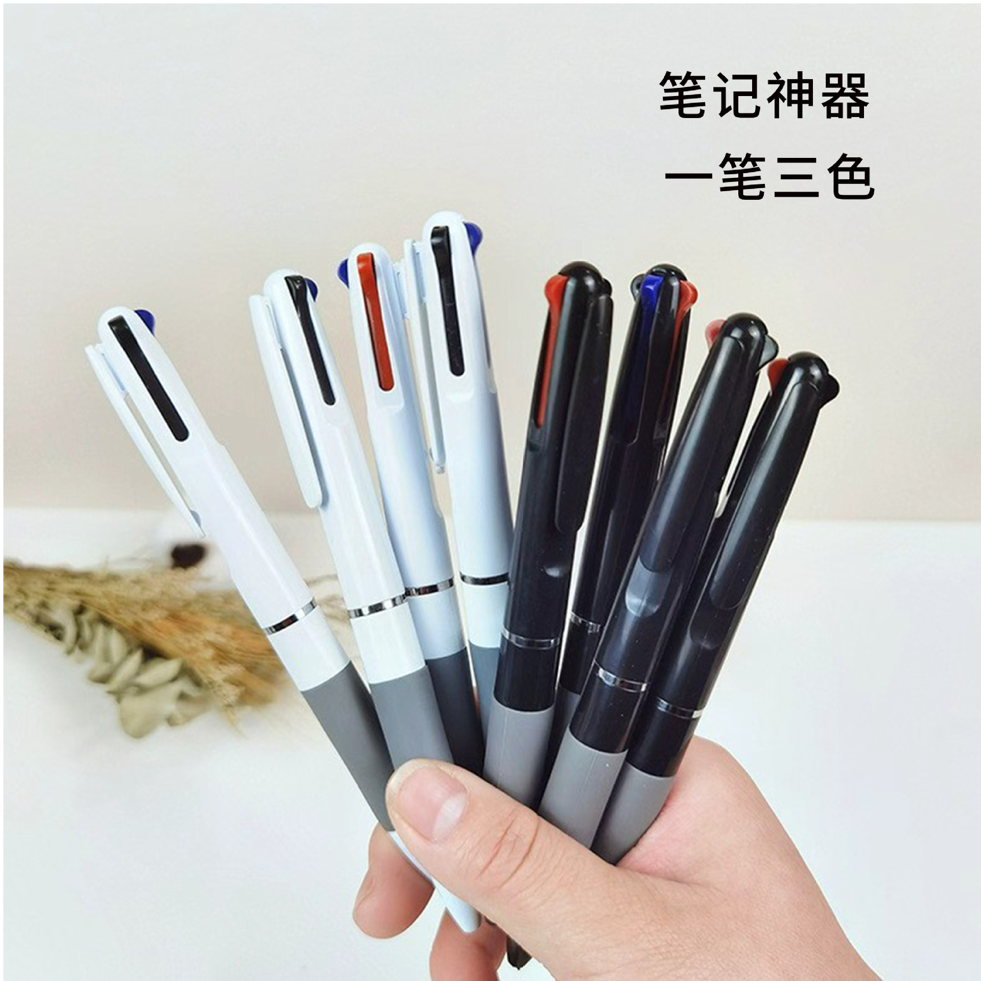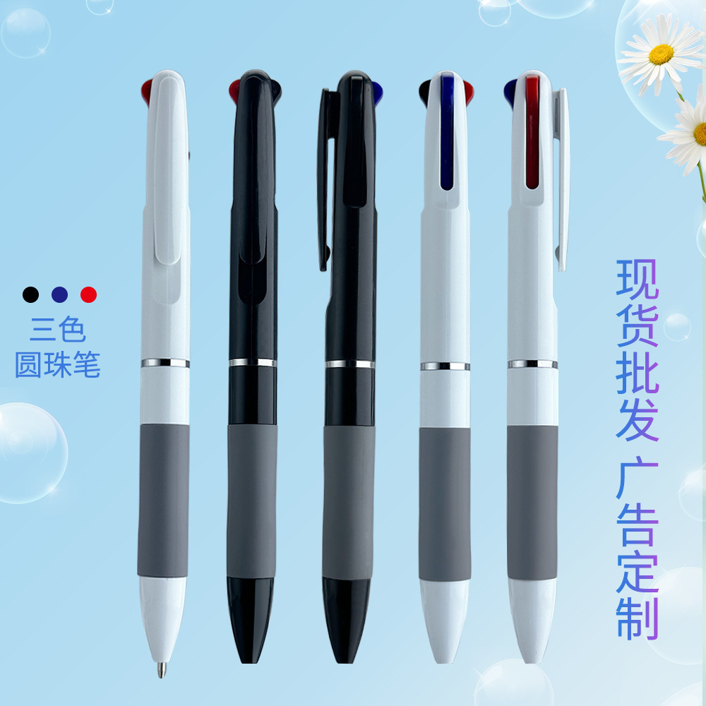 现货三色笔多色圆珠笔印刷logo按动多色油笔多用途广告多色笔批发